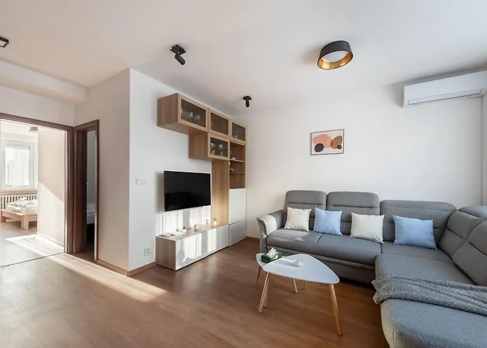 The Old Town Square is approximately 4 km away, while the Slavia Museum is just near the 54 m² apartment. Enjoy a walk around the unique transmitter Zizkov Television Tower, nearly a 15-minute drive from the apartment.